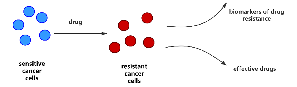 一种药物作用于某类细胞后,会杀死其中没有抗性的细胞,而这类细胞中具有抗性的细胞不会被杀死,即进行了选择。具有抗性的细胞大量繁殖产生很多抗性后代,再用这种药物时表现出的药效大大下降的现象就是细胞的耐药性。采用体外低浓度梯度递增联合大剂量间断冲击方法诱导肿瘤细胞对特定药物产生耐药性,从而构建出对特定药物产生耐药性的肿瘤细胞株。